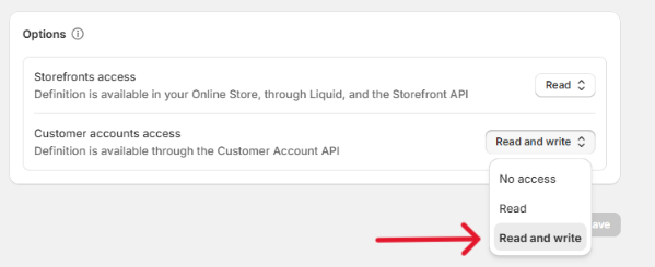 When you activate the Last Viewed add-on, a 'Last Viewed' metafield is automatically added to your customers in Shopify. To ensure proper functionality, go to your Shopify Dashboard > Settings > Custom Data > Customers. Find the 'Last Viewed' metafield definition and set 'Customer accounts access' to 'Read and write'.